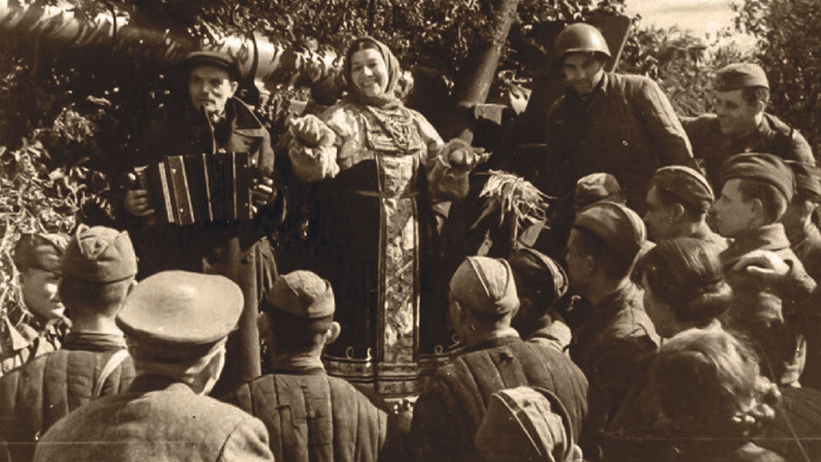 Еще недавно этот красноармеец и два его товарища собирались в разведку. Перед выходом они попросили у артистов, которые разместились в землянке, спеть им что-нибудь. На дорожку. Лидия Русланова не отказала. Знала, как хорошая песня умеет поднять боевой дух защитников, поддержать их. Певица со своим коллективом уже давно ездила с концертами по фронту. Бывало, что пела под обстрелами, под открытым небом, перед ранеными в госпиталях. Красноармейцам казалось, что ее голос отгоняет смерть и та уже не дышит в затылок.