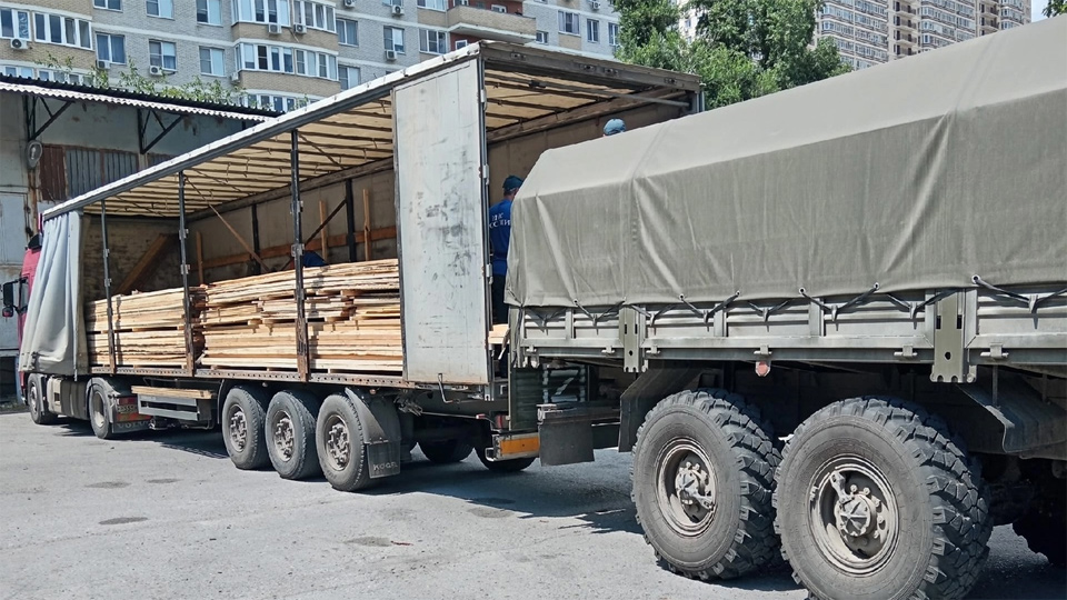 Доставка пиломатериала для обустройства позиций организована для Добровольческого отряда специального назначения БАРС-16 имени Александра Невского.