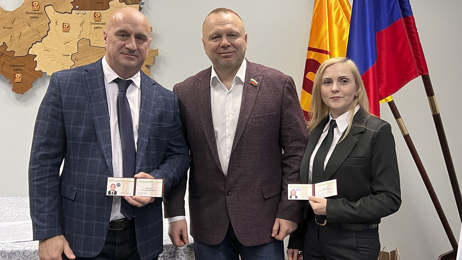 Подводя итоги заседания, Игорь Новиков поздравил коллег с наступающим Новым годом и вручил Благодарственные письма председателю Местного отделения Партии СПРАВЕДЛИВАЯ РОССИЯ в Гатчинском районе Александру Иванову, председателю Местного отделения в Бокситогорском районе Анне Соболевой и члену гатчинского отделения Вере Шугаевой.