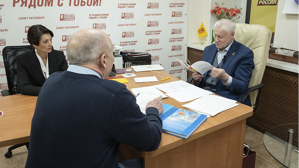 Председатель Партии СПРАВЕДЛИВАЯ РОСССИЯ, руководитель партийной фракции в Госдуме Сергей Миронов в рамках рабочего визита в Санкт-Петербург провёл приём в Центре защиты прав граждан СР.